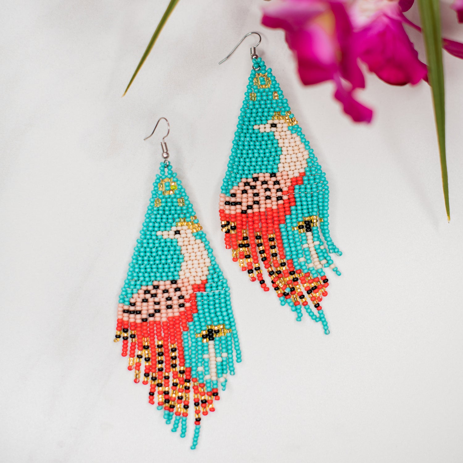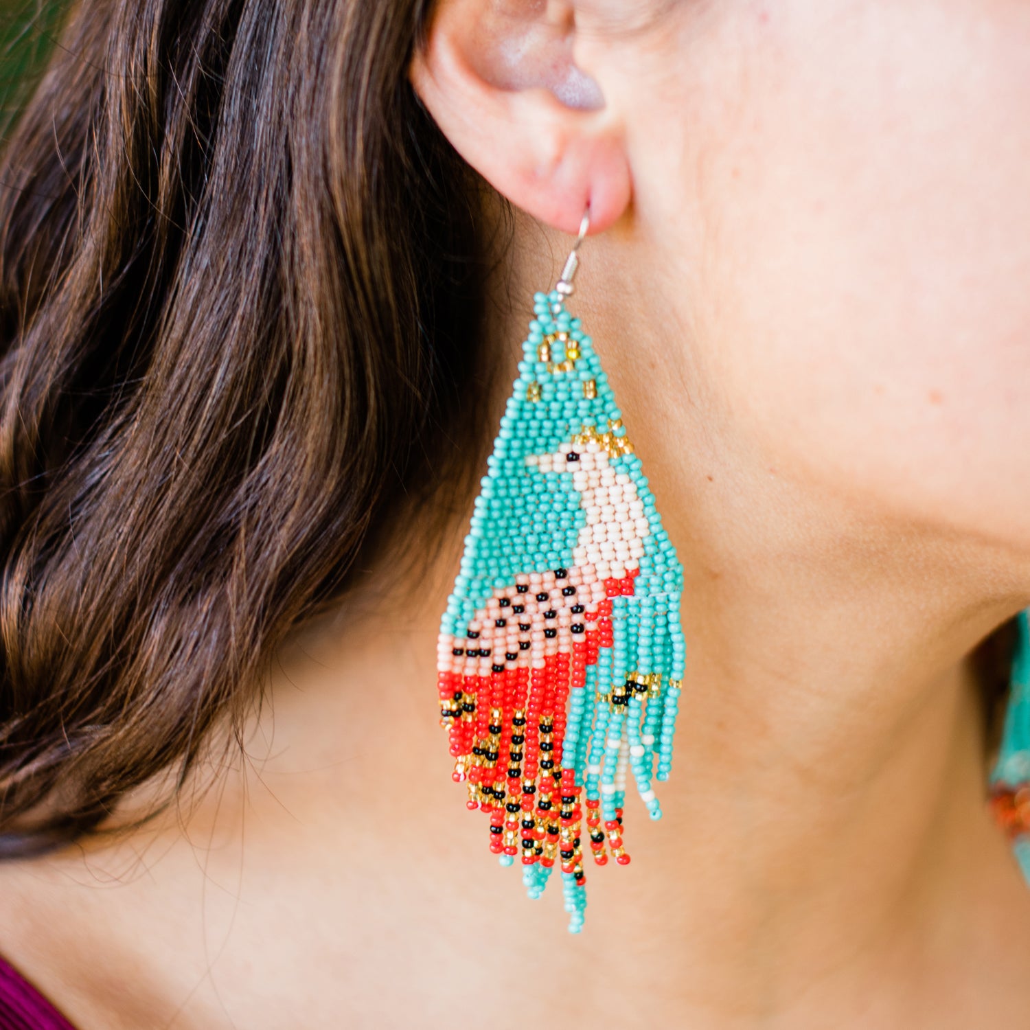 Beaded Fringe Peacock Earrings