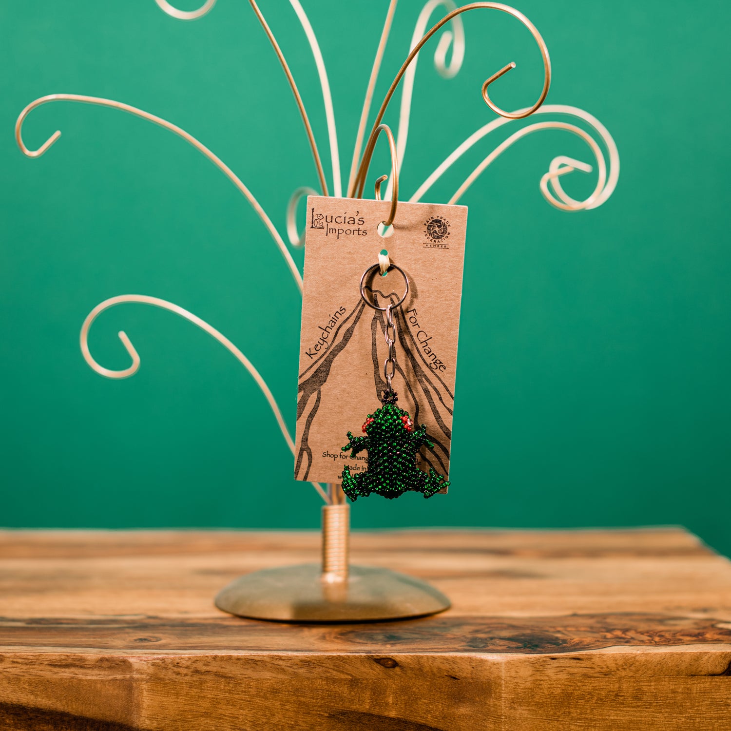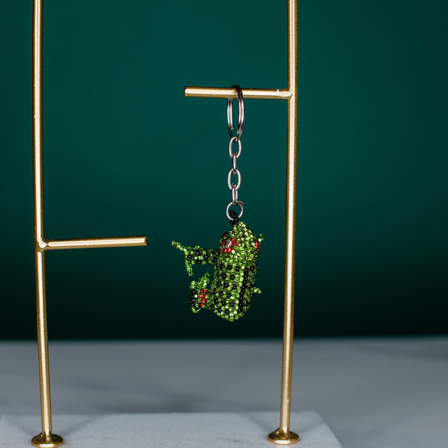 Hop into fun with this charming Frog Keychain, handcrafted in Guatemala with vibrant green beads and a whole lot of personality. Perfect for animal lovers, nature enthusiasts, or anyone who appreciates a playful pop of color on their keys or bag.