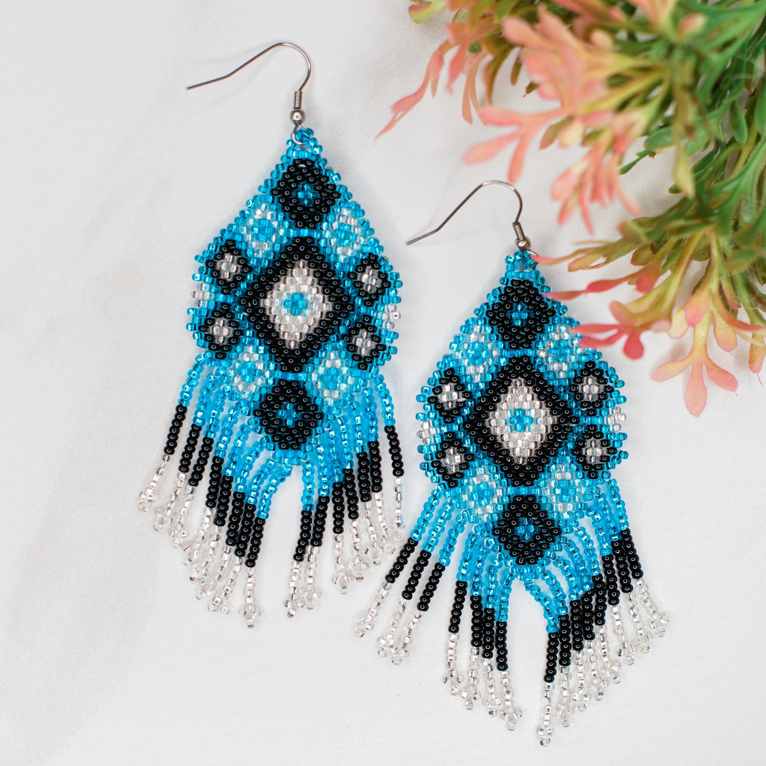Make a statement with these beautiful earrings! These fair trade beaded Kite Earrings are made from glass seed beads and woven into fun patterns.
