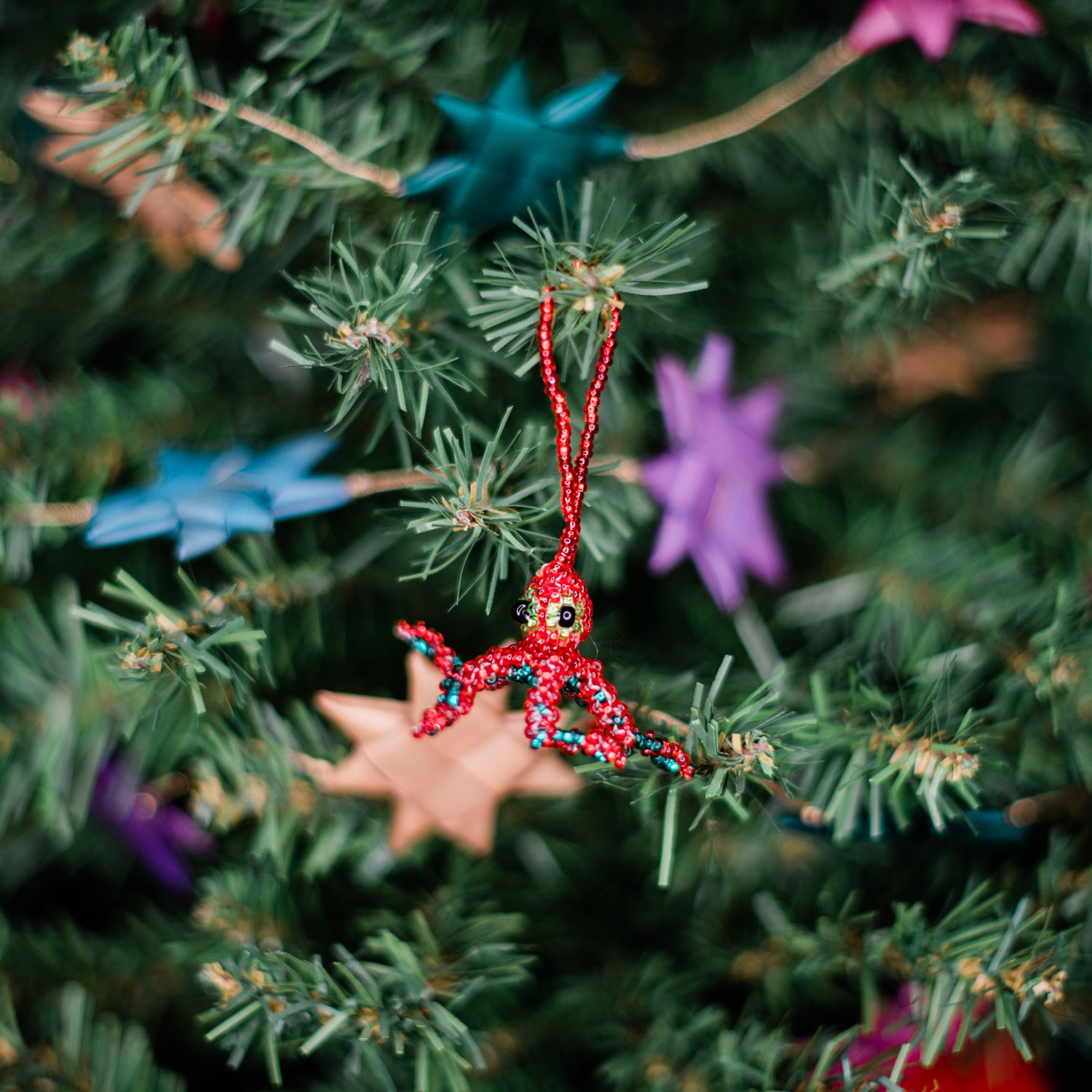 Each fair trade Beaded Octopus Ornaments are carefully hand-crafted in Guatemala using glass beads. Deck your tree with these beauties or just hang them as a festive decoration. These ornaments come in assorted colors.