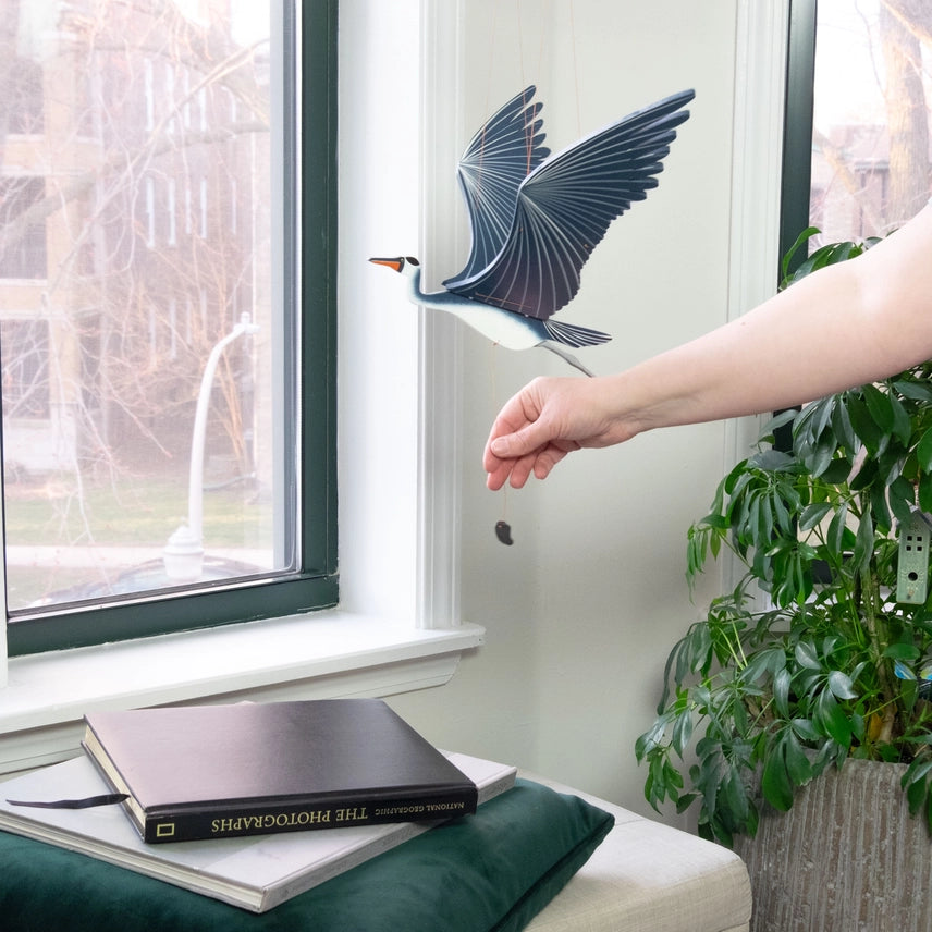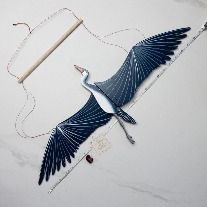 Bring the grace of the majestic Blue Heron into your home with these carefully crafted mobiles! Each mobile is perfectly balanced for the most graceful movement. Just pull and release the bottom string and watch them fly. Each is constructed of medium-density fiberboard, hand painted, and decorated with dyed tagua nuts.
