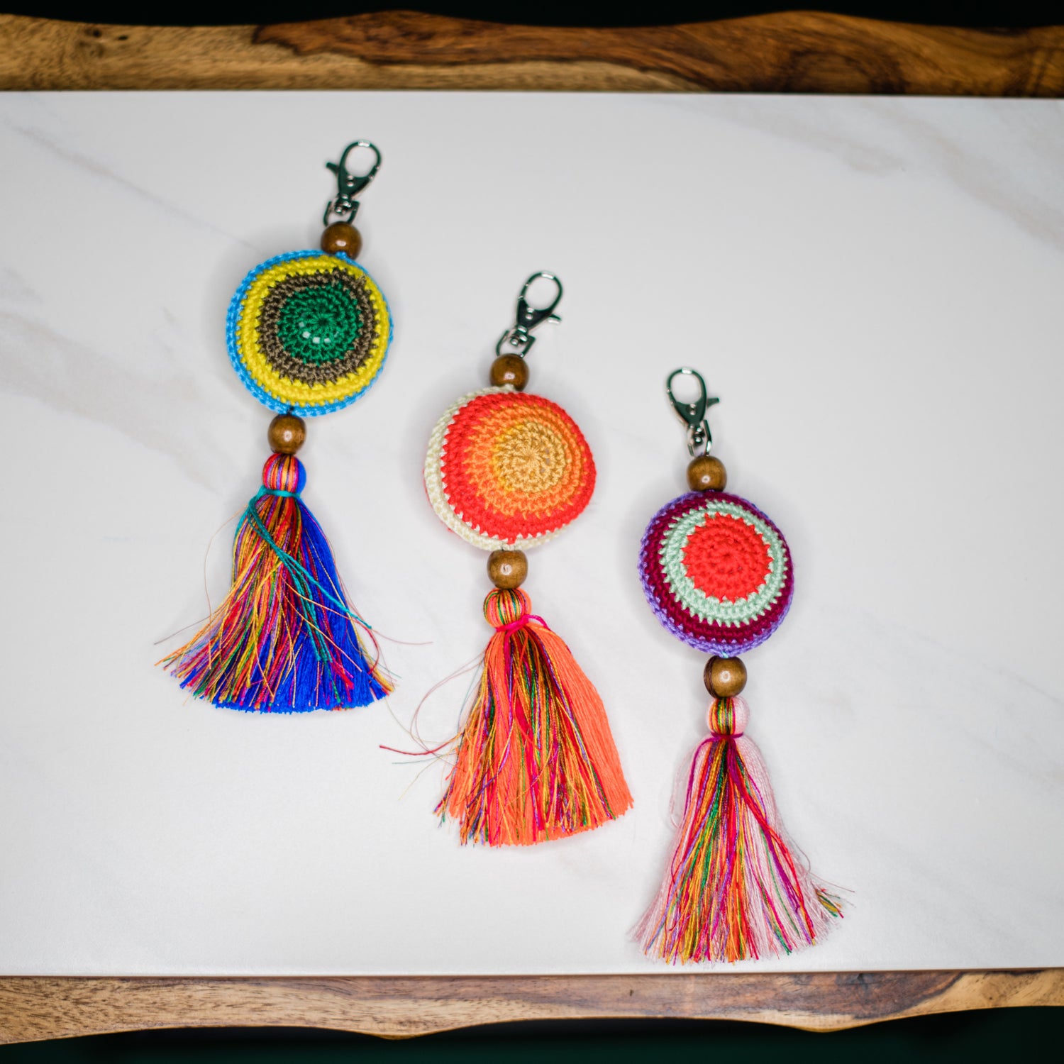 Add a statement piece to your favorite purse with this Crochet Zipper Pull. Even wear it as a key chain on your keys and backpack!