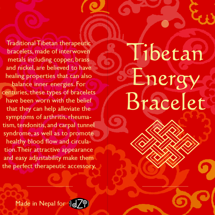 Traditional Tibetan healing bracelets are handmade with interwoven brass, copper and Tibetan silver, metals believed to have healing properties that balance inner energies and can alleviate symptoms of arthritis, tendonitis and carpal tunnel. Bends to fit most wrist sizes.
