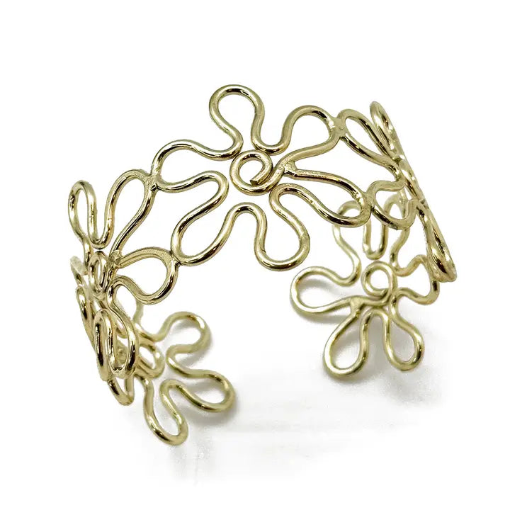 Made from high-quality materials and finished with a luxurious gold plating, this cuff adds a touch of elegance to any outfit, whether it’s for everyday wear or a special occasion. Its open design ensures a comfortable fit for any wrist size, making it a versatile addition to your jewelry collection. Embrace your feminine side with the Gold-Plated Floral Cuff, a perfect blend of sophistication and charm.