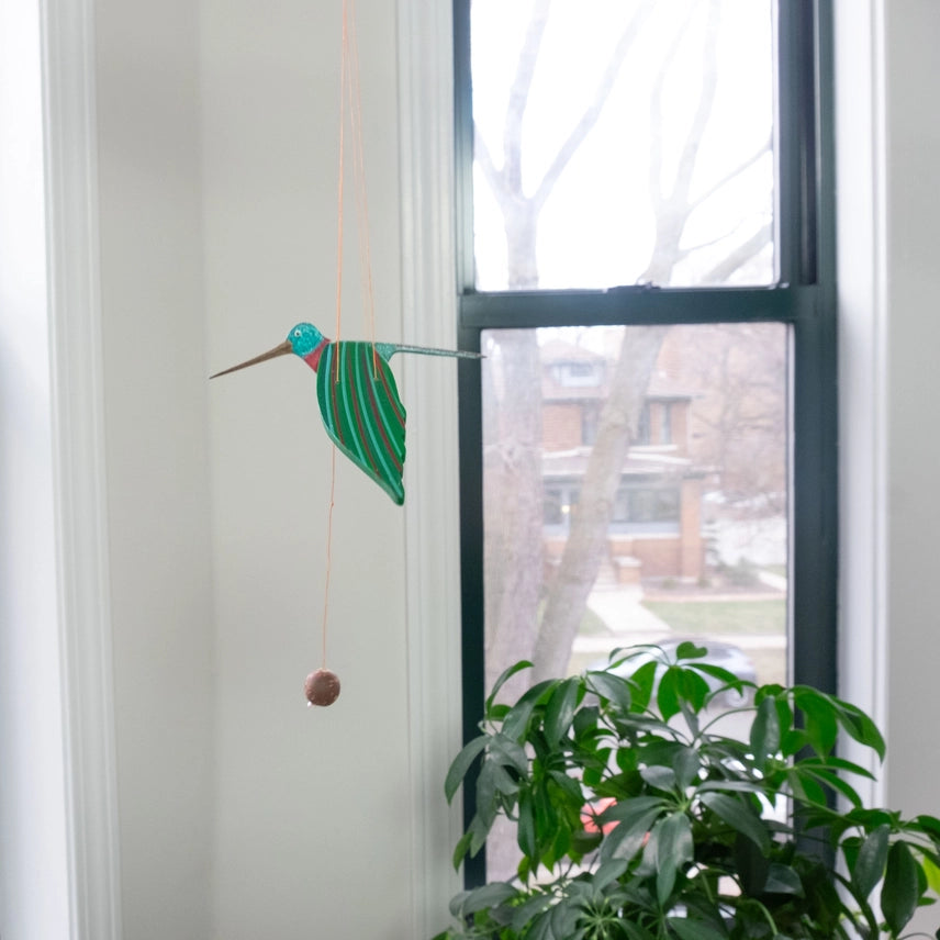 Green Ruby Throated Hummingbird Flying Mobile