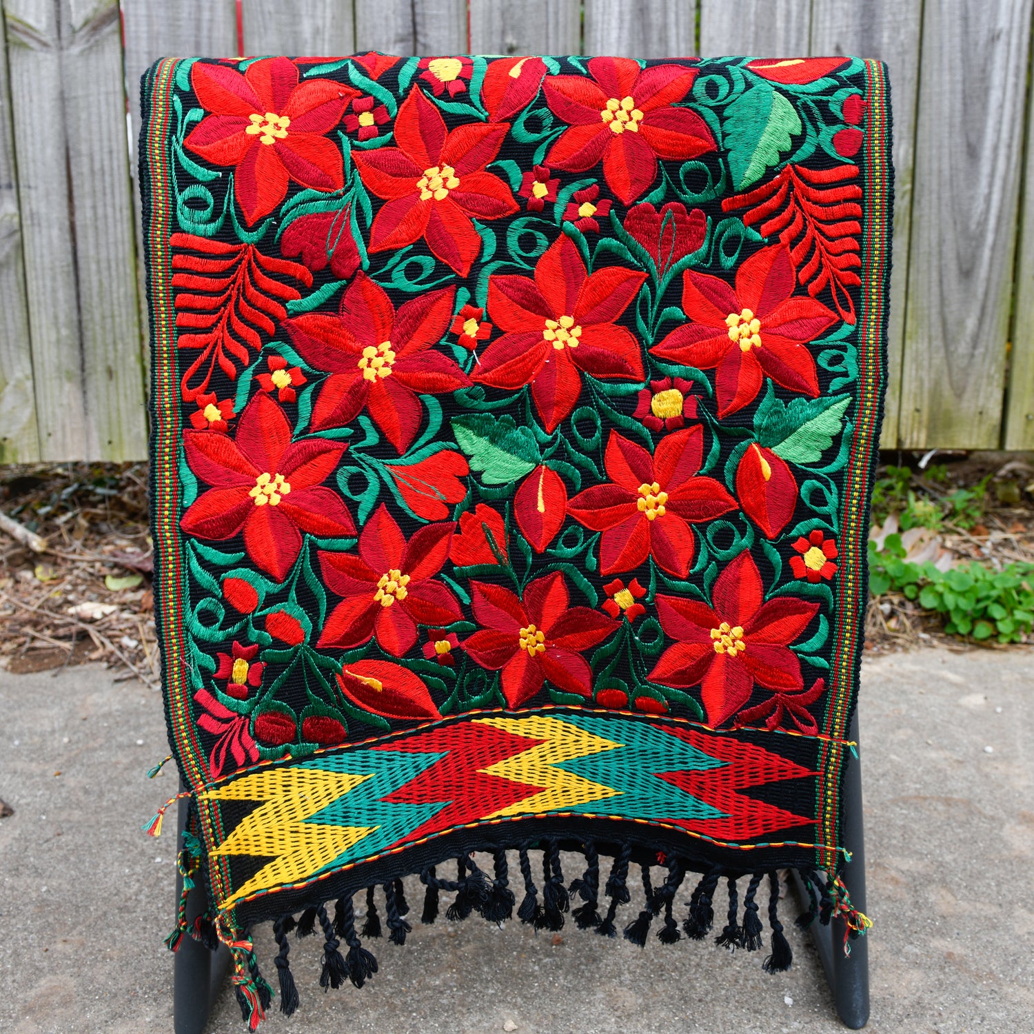 Large Poinsettia Embroidered Table Runner