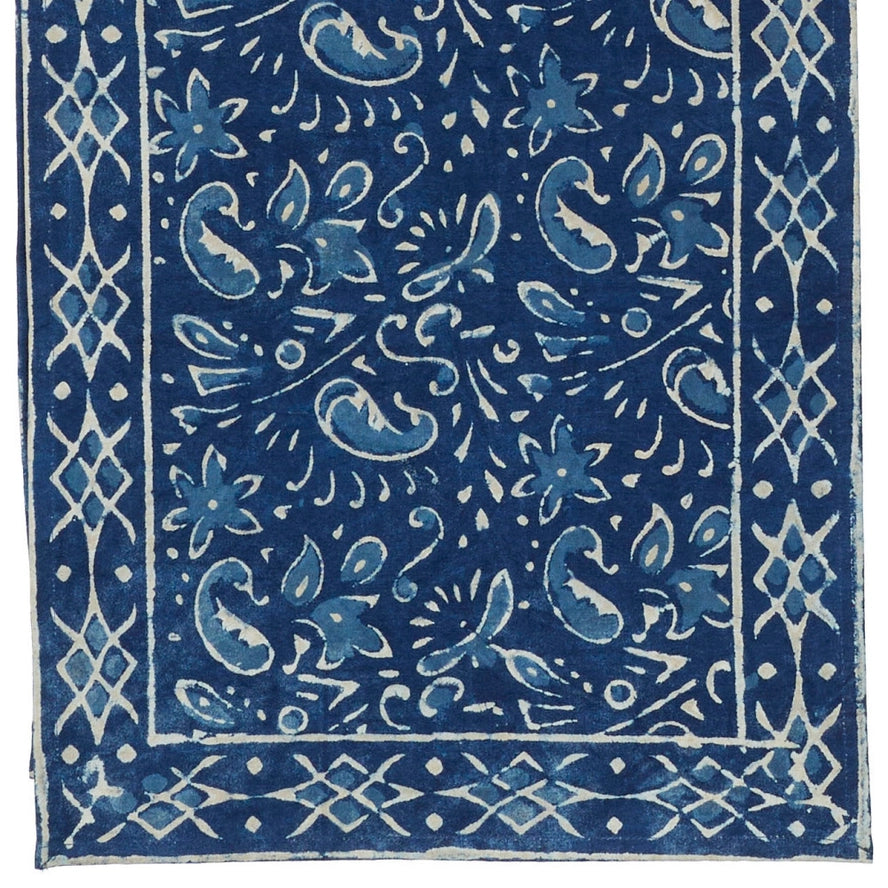 This handmade table runner is resist dyed with natural indigo after block printing with nature-inspired patterns. Pair with matching handmade textiles for a coordinated table.