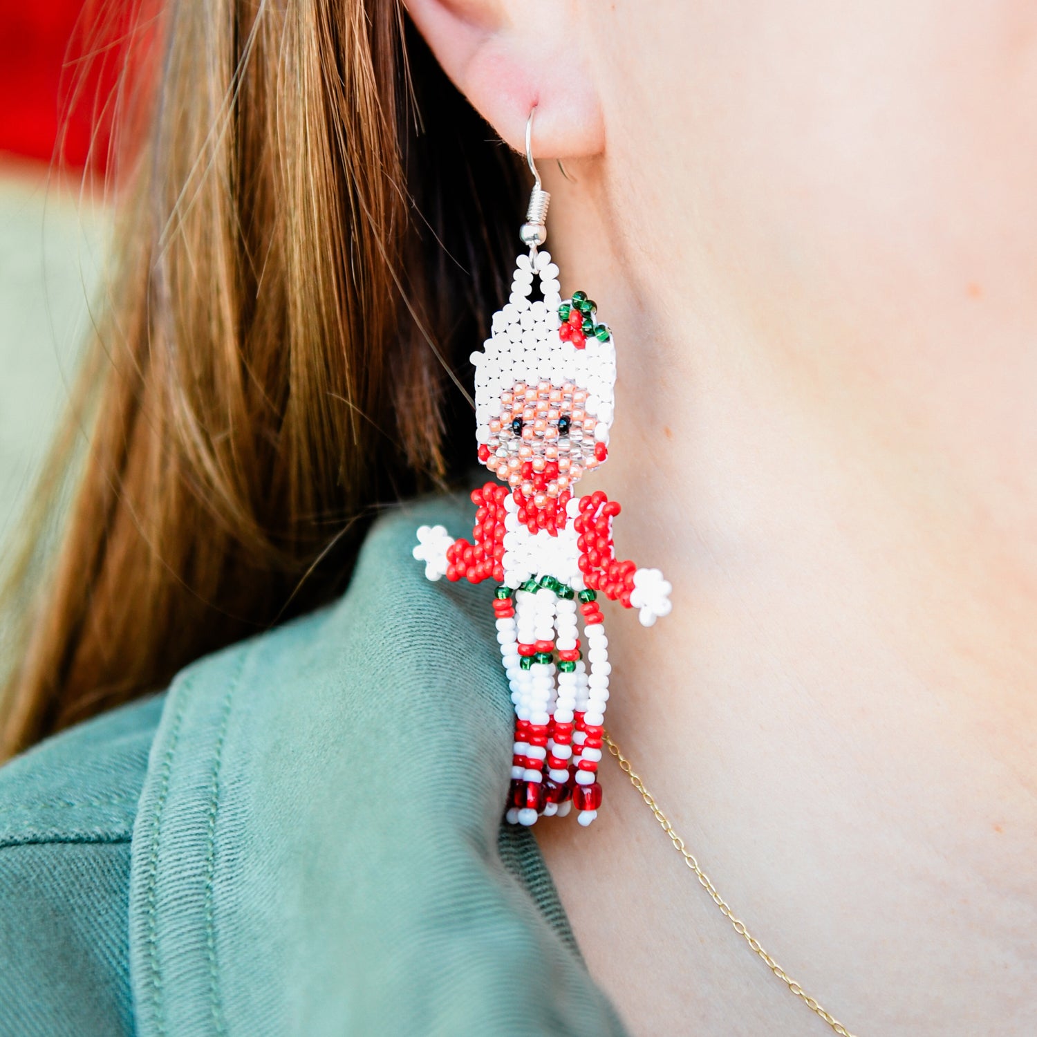 Mrs. Claus is the unsung holiday hero—and our favorite festive icon! These beaded fringe earrings celebrate her sweet spirit with a charming red bonnet, rosy cheeks, and Holiday red fringe. Santa might get all the spotlight, but let’s be real—he wouldn’t get far without Mrs. Claus by his side.