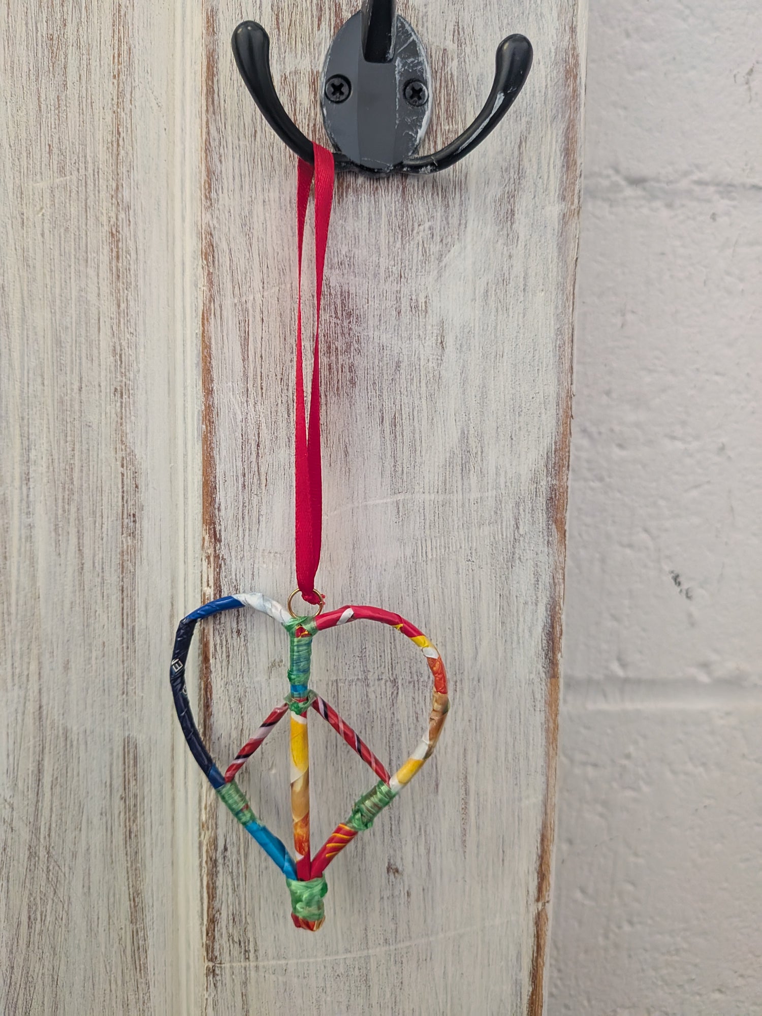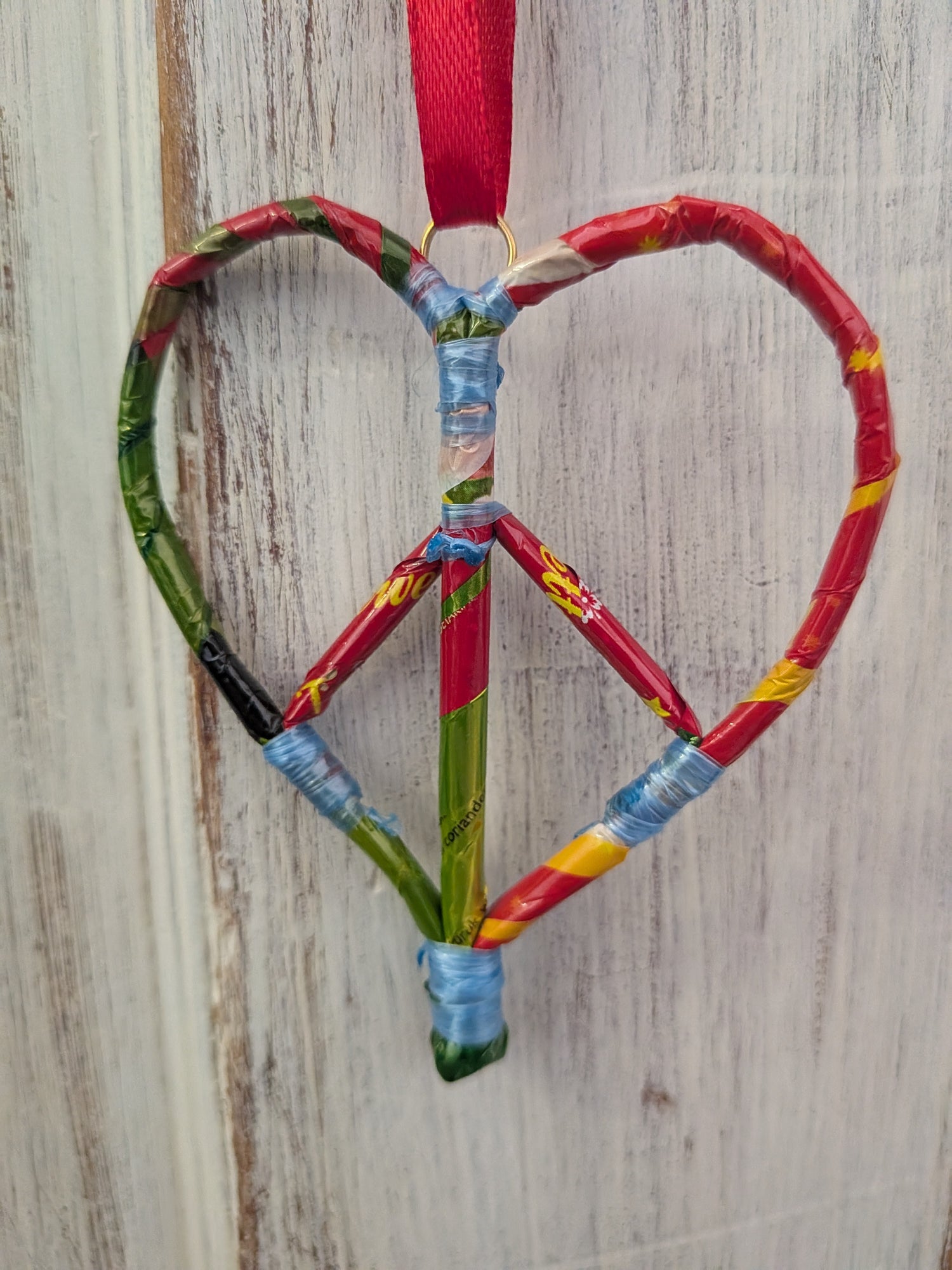 Our Delightful Peace Heart Ornaments are handcrafted in Nepal by women artisans from recycled materials. They are a sweet addition to any tree and safe around pets and small children!
