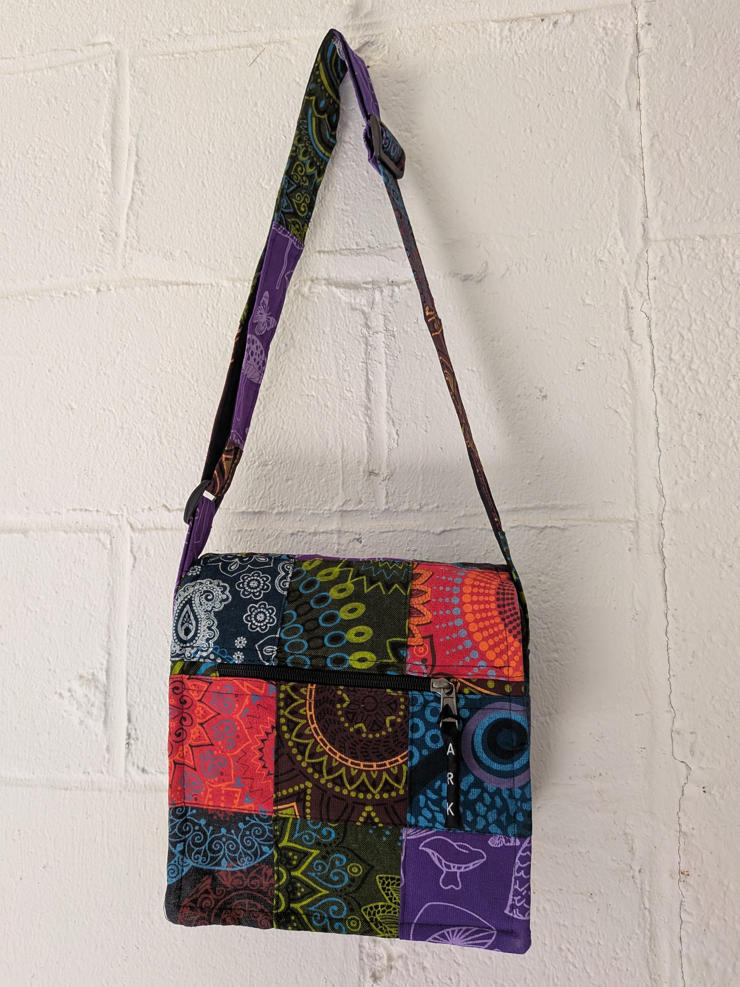 Ark Fair Trade's Petite Patch Shoulder Purses are certified Fair Trade by the Fair Trade Federation and made with cotton. They come in assorted cotton patchwork. The main enclosure is velcro and the outside features another zipper compartment. These bags have adjustable straps. These bags have been crafted responsibly and ethically in Nepal, and made with lots of love.