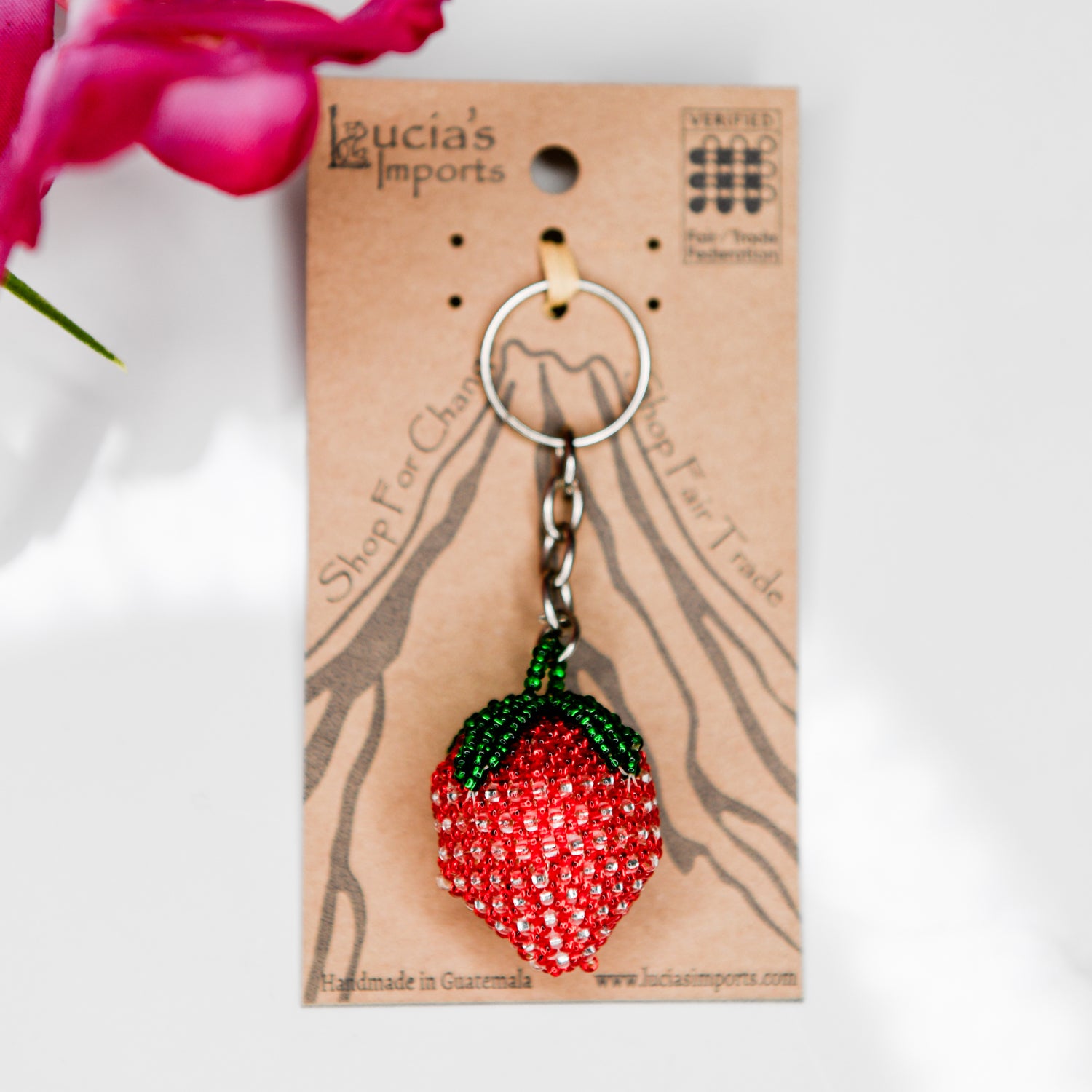 We picked a sweet strawberry in the patch to add to our best-selling bead keychain line. It's strawberry season this Summer, but these adorable keychains will never go out of season!