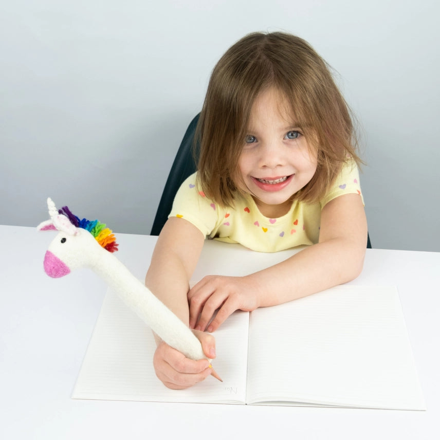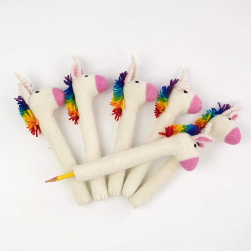 Our handmade felt rainbow unicorn pencil toppers are super cute. They make writing fun, and can also be used as a small puppet. This is the perfect gift to brighten up anyone's work/school area!