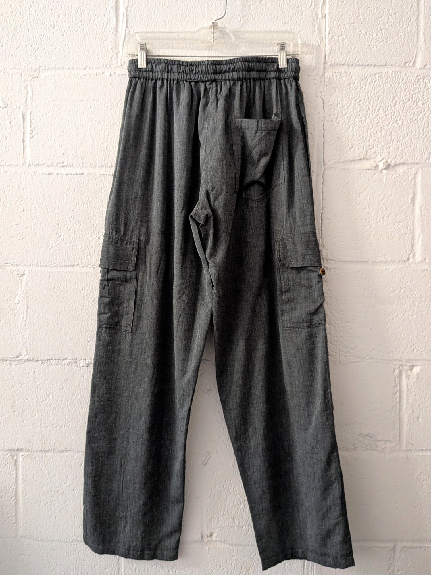 Be ready for any adventure with our new unisex cargo pants! Each pair is made from 100% cotton and has cargo pockets on both sides. They feature an elastic waist and a total of 4 pockets. They are crafted responsibly and ethically in Nepal, and made with love.