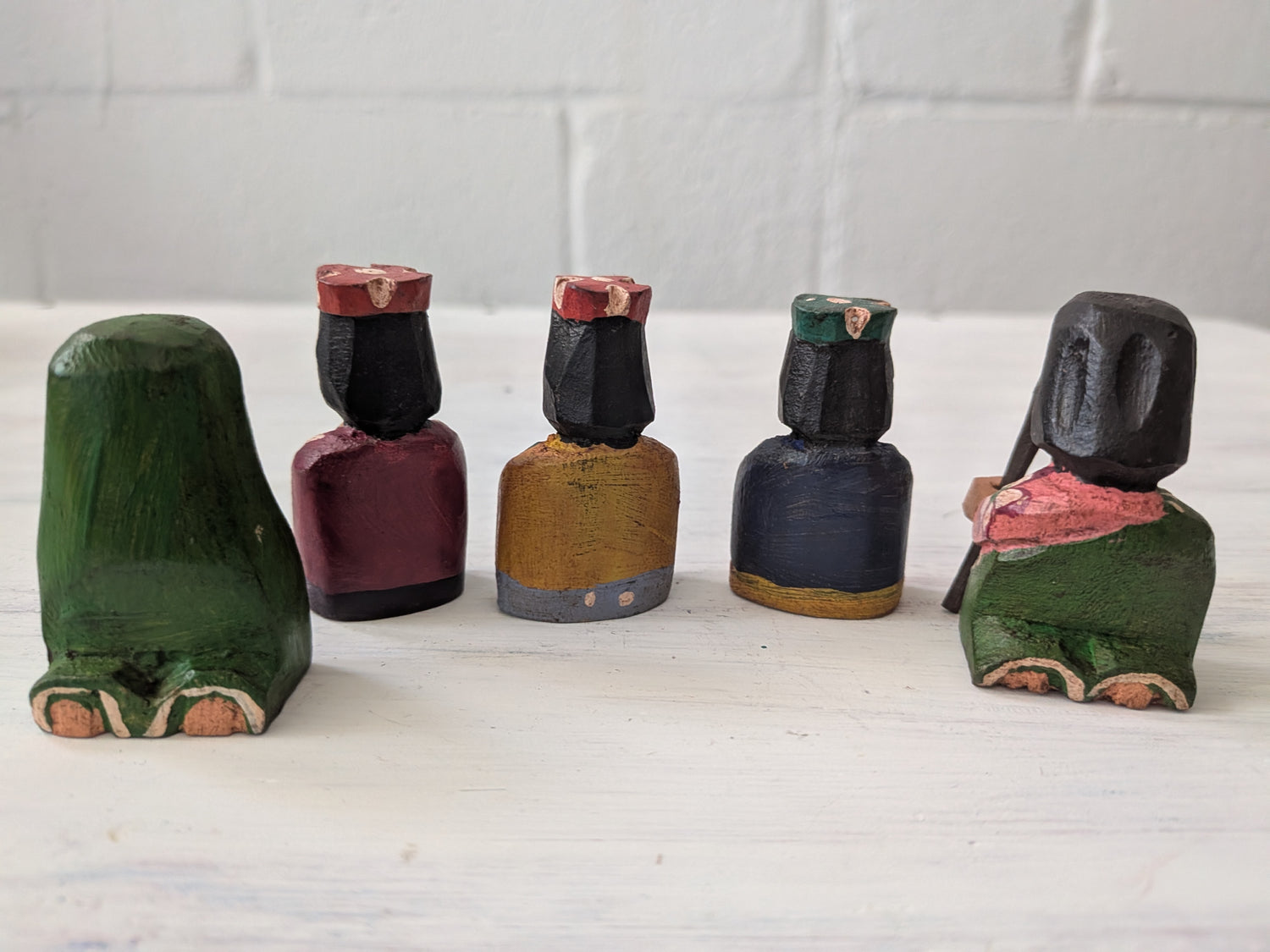 Celebrate a traditional Christmas with these small hand-carved and painted nativity sets from Guatemala. Each set is one of a kind with slight variations in color and pattern. 8 pieces each.
